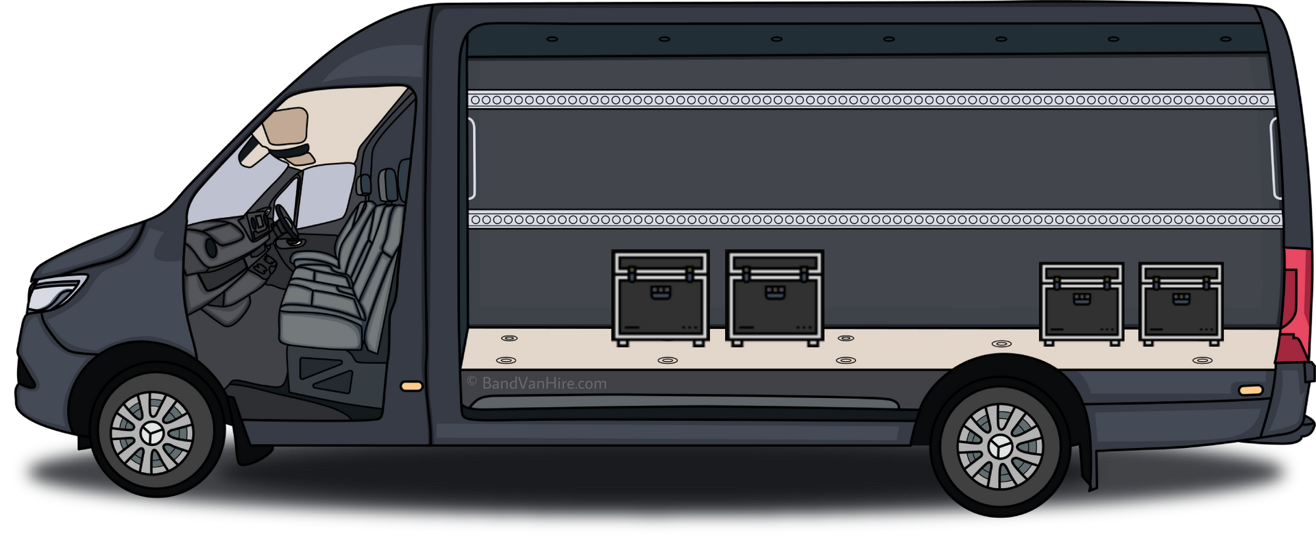 BandVanHire hires out luxury self drive band vans, splitters, tour vans, mini nightliners and trailers built specifically for the music industry. Based in Brighton the vans are available for use across the UK and Europe and can be driven on a standard driving licence.