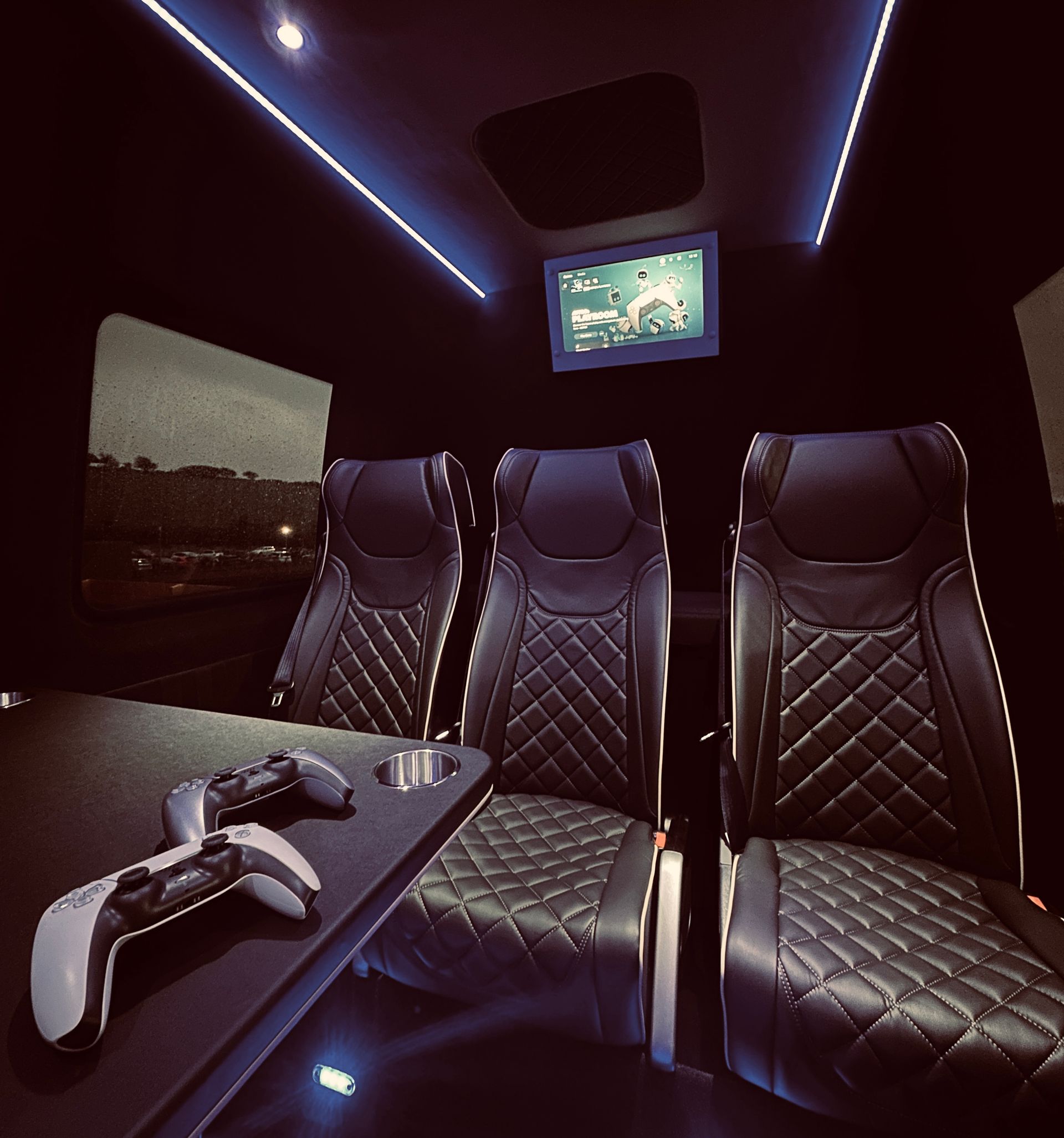 Sit back and relax in our reclining leather seats or climb into your very own bunk bed on board our mini nightliners. Stream thousands of films on the built-in TVs or compete against your bandmates on the PlayStation. All our vehicles also come with superfast WiFi and mains sockets.