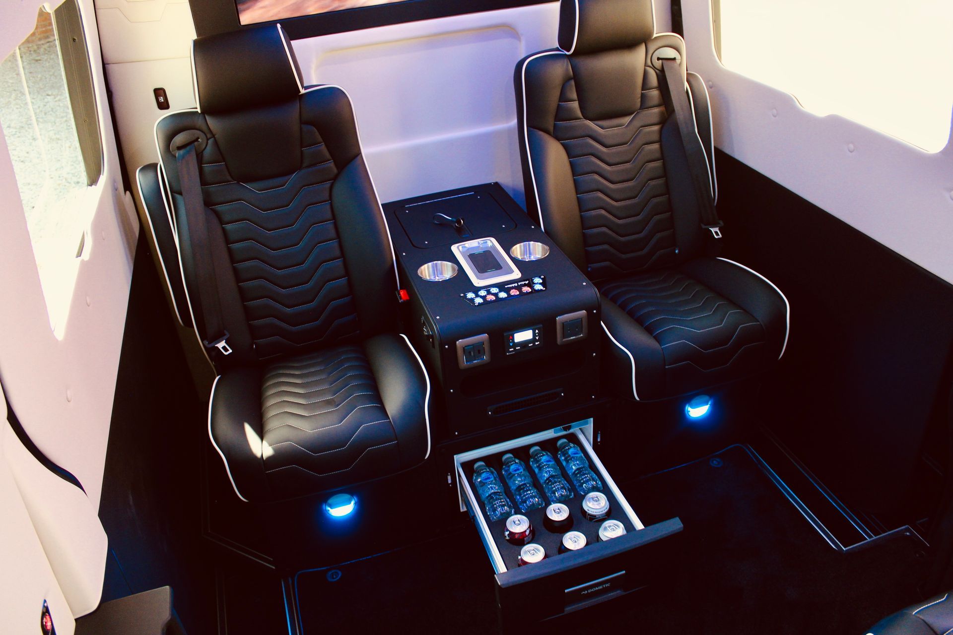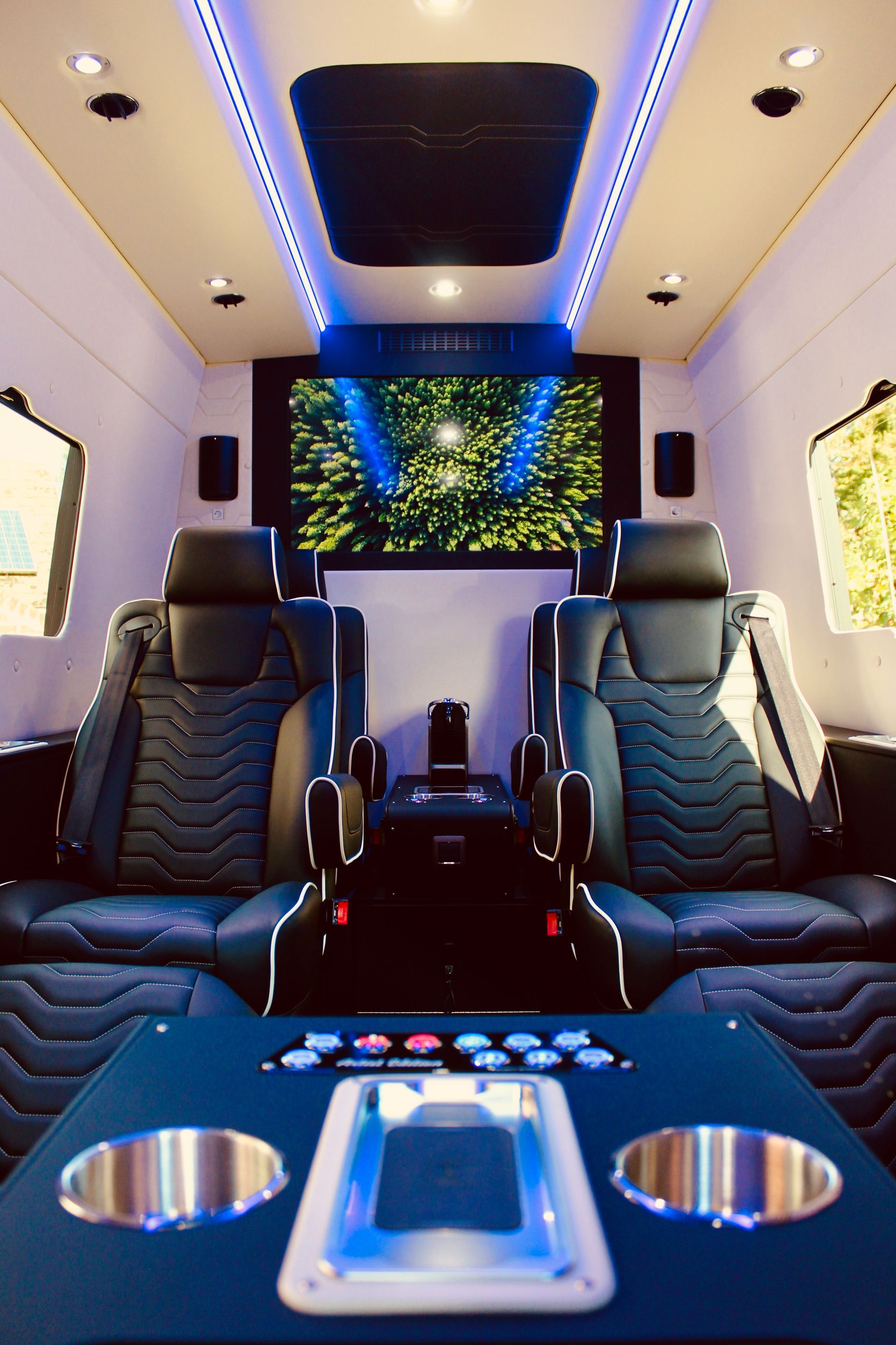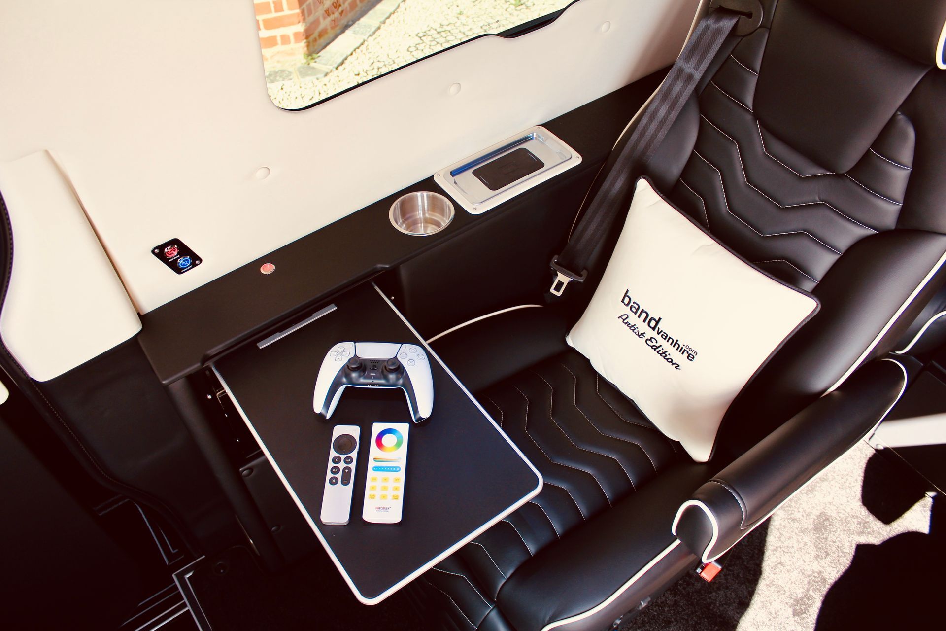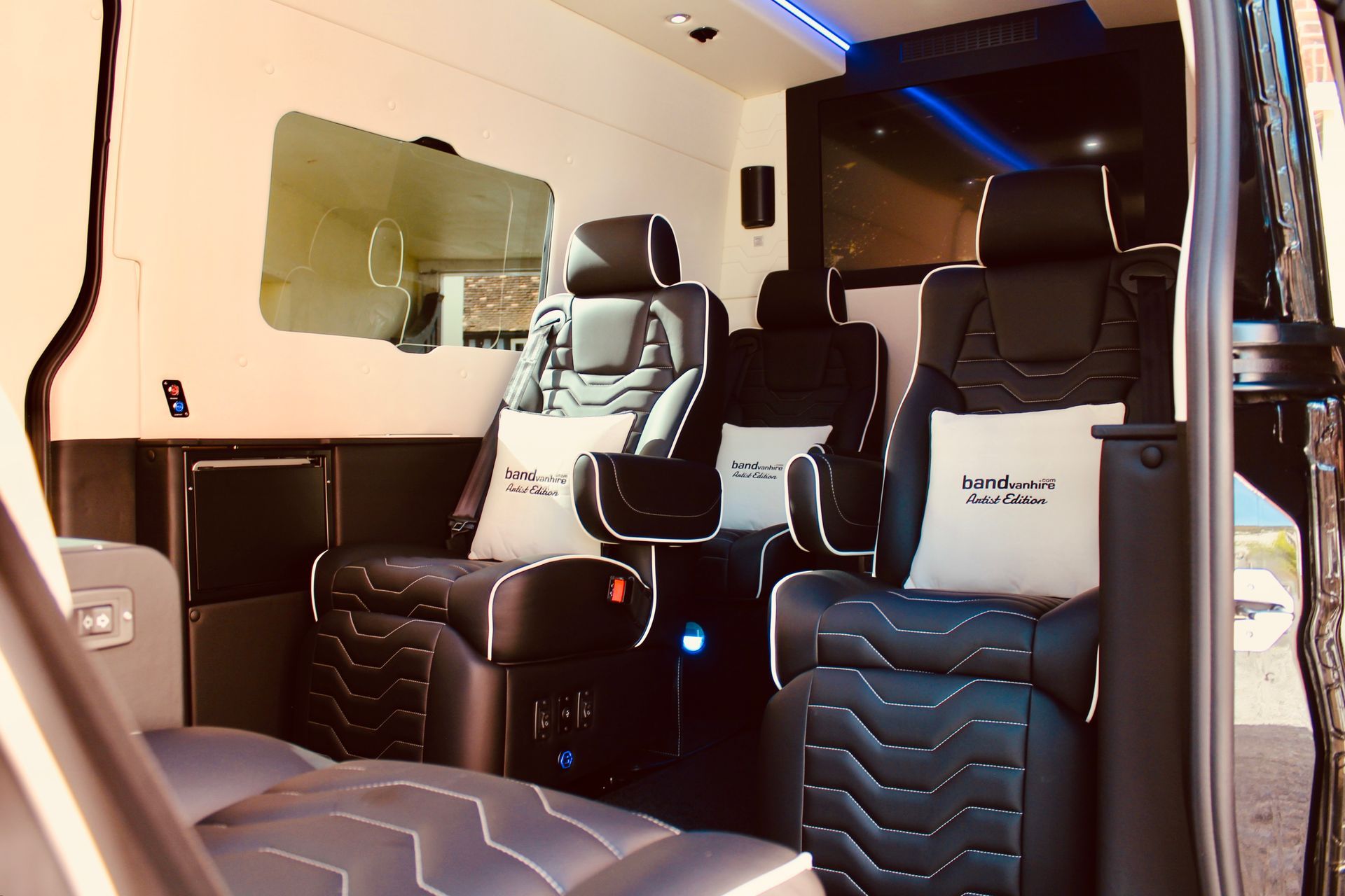 Our Artist Edition Touring Vans are the highest-spec vehicles in our fleet. They set a new benchmark in luxury musician transport combining hand crafted finishes with the latest cutting-edge technology. Travel in unrivalled comfort with six electric reclining captain seats in the rear.