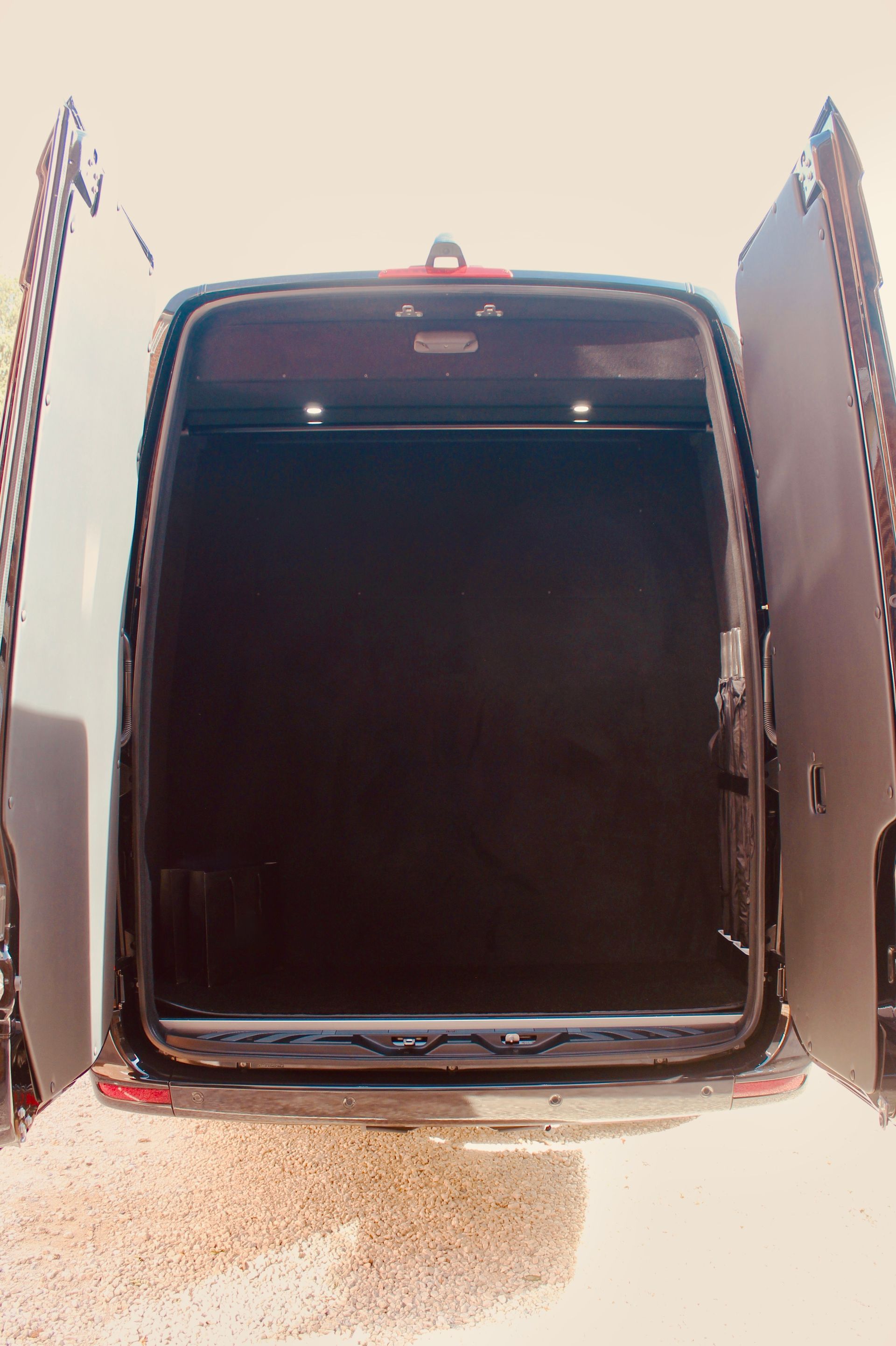 Featuring 6 luxury captain seats in the rear cabin and 2 seats in the front. All seats are heated and crafted in black vegan leather. The 2 main artist seats in the rear cabin feature electric footrests and electric fold out tables along with armrests. 2 rear seats have Isofix.